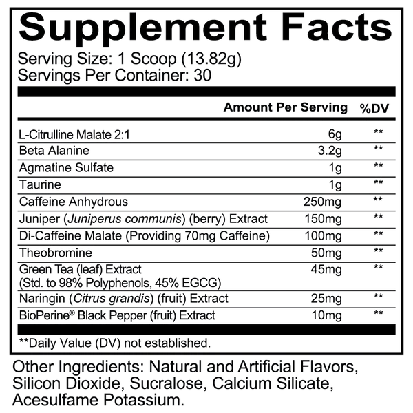 • Award-winning and #1-selling pre-workout formula. • Complete pre-workout supplement with a powerful combination of endurance, pump, energy, and focus factors. • 320mg of caffeine for long-lasting energy to power through your toughest workouts. • 6g of L-Citrulline for enhanced blood flow and intense pumps. • 3.2g of Beta-Alanine for muscular endurance and performance. • Fully transparent label so you know exactly what’s in every scoop of your pre-workout powder.